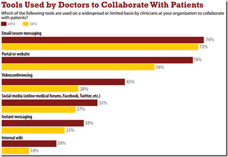 The portals are indeed a leading way for providers to engage with patients, as can be seen in this graphic from the 2014 Healthcare IT Priorities published by InformationWeek1.