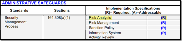 The first reason is that it is required for compliance with HIPAA Security Rule which, by way of the HITECH Act, now applies to Business Associates in addition to Covered Entities. It is a “Required” Implementation Specification in the “Security Management Process” standard under Administrative Safeguards of the HIPAA Security Rule, as highlighted in the table below.